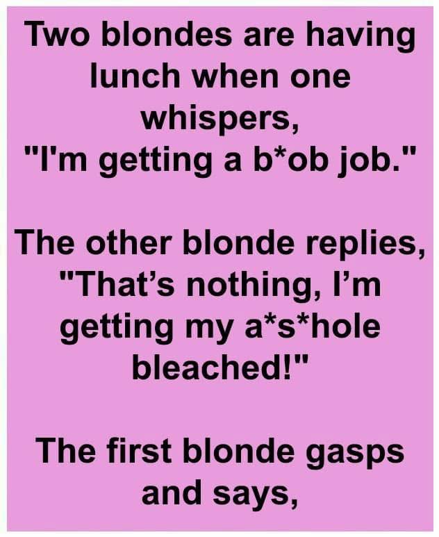 Two blondes are having lunch when one whispers,