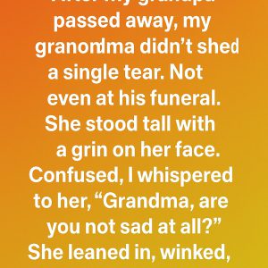 Not even at his funeral. She stood tall with a calm strength and a gentle smile on her face. Confused by her reaction, I leaned over and…