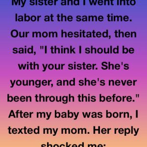 My sister and I went into labor at the same time. Our mom hesitated, then said, “I think I should be with your sister. She’s younger, and…