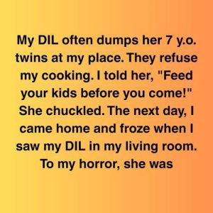 My DIL often dumps her 7 y.o. twins at my place. They refuse my cooking. I told her, “Feed your kids before you come!” She chuckled. The…