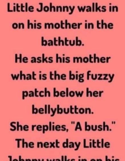 One afternoon, while Johnny’s mom was relaxing in a warm bath, little Johnny suddenly walked into the bathroom. His eyes filled with curiosity as he noticed something…